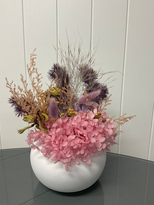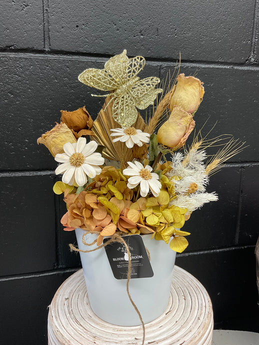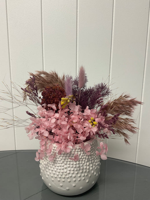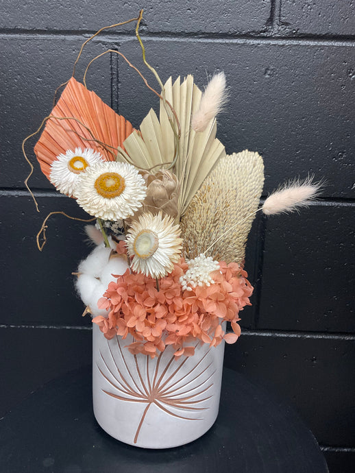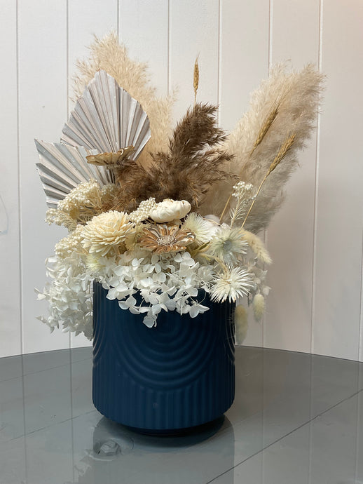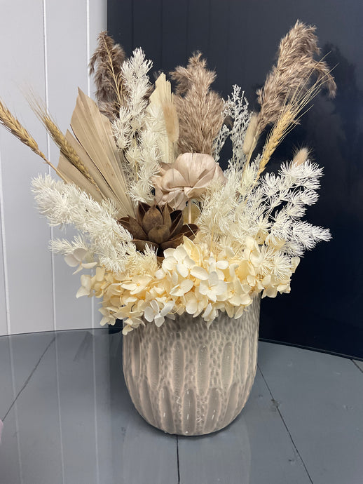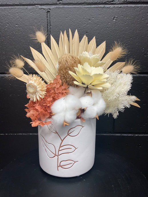 Banksia Dried White Ceramic Pot