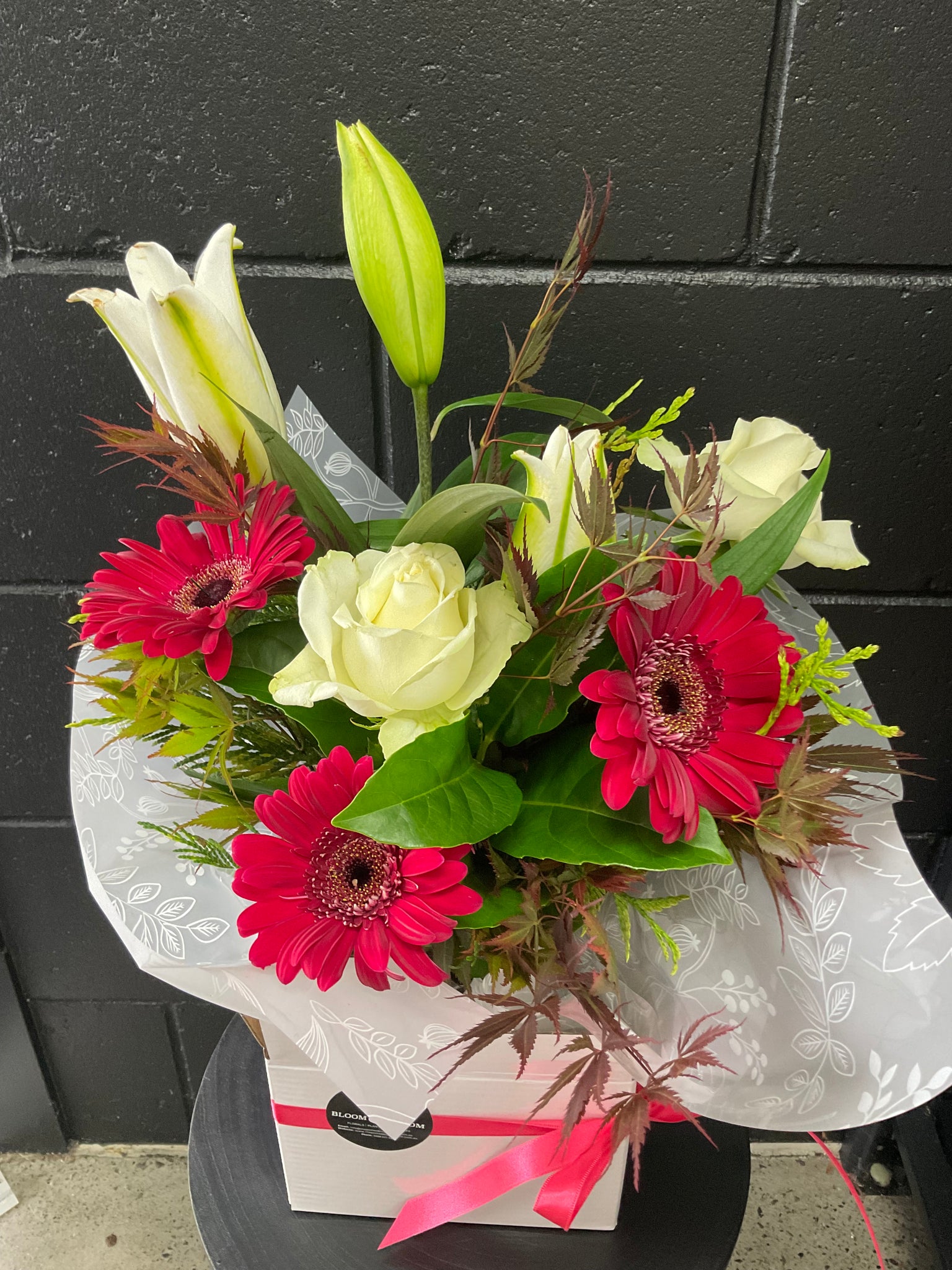 Our festive boxed arrangements are a florist choice on the week of Christmas .