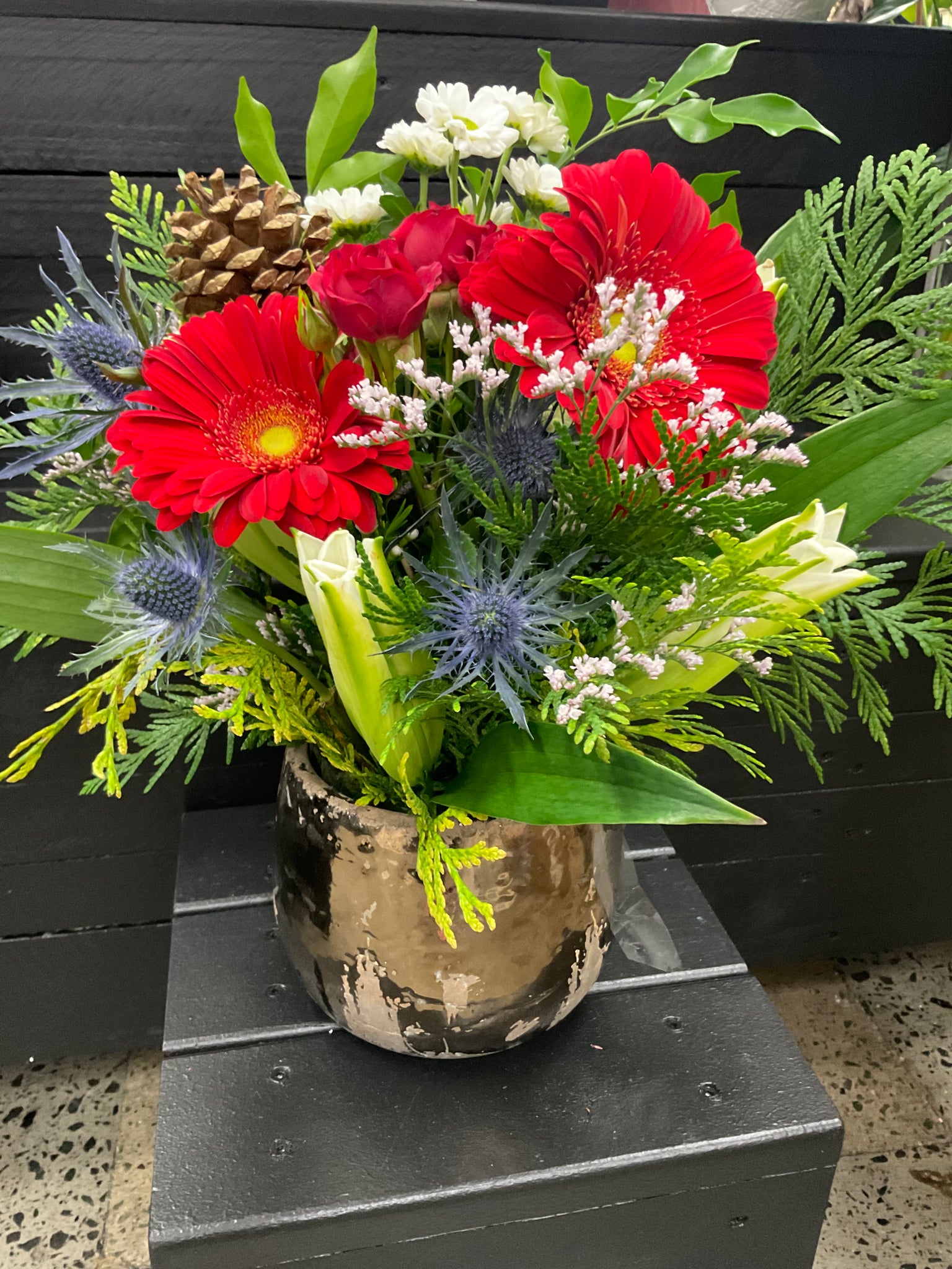 Blooms of the festive season in our Gold ceramic vessel.